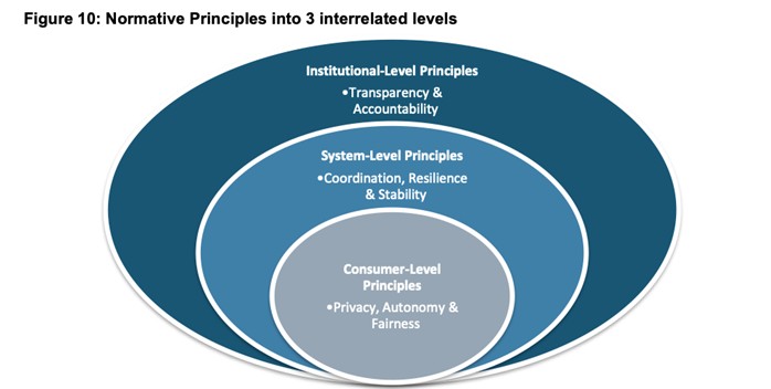 3 Seviyede Prensipler: Raporun merkezinde olan 9 prensipte; Tüketici seviyesinde gizlilik, otonomi ve adil olma; Sistem seviyesinde koordinasyon, dayanıklılık ve kararlılık; Kurumsal seviyede ise şeffaflık ve hesap verilebilirlik anlatılmaktadır.