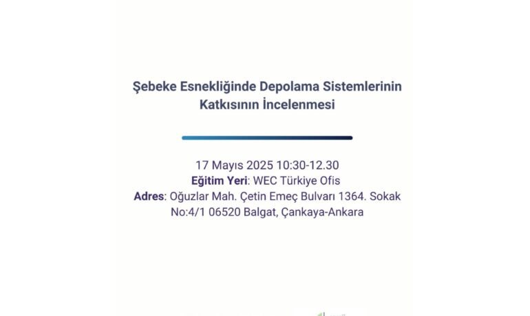WEC Türkiye & ETK Uzmanları Derneği Şebeke Esnekliğinde Depolama Sistemlerinin Katkısının İncelenmesi Eğitimi Detaylar