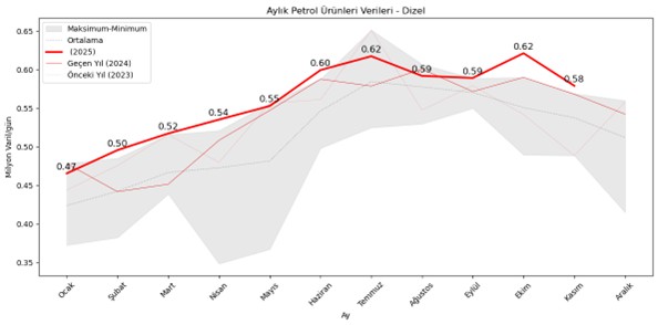 Bir ekonomik gösterge olarak dizel talebindeki artış yerini sağlamlaştırmıştır. Binek araç pazarında kaybettiği paya rağmen aylık rekorlar gelmeye devam etmektedir. Bu da ılıman değil güçlü bir büyüme habercisi olarak değerlendirilebilir.