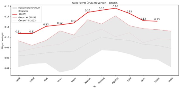Benzin talebindeki seviye ve rekorlar netleşmiş oldu. Tüketici tarafı ekonomik göstergelerde okulların açılması sonrası ağır ağır düşmesi beklenen benzin talebi Kasım ayında bu eğilime de meydan okumuştur. Özellikle yıl sonu kampanyaları ile araç sayısı artışını, Ocak ayı istatistikleri yayınlandığında daha net görebileceğiz.