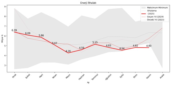 Enerji ithalatında son 5 yılın en düşük Kasım ithalatı da gerçekleşmiş oldu. Yerli petrol ve gaz üretimi, rüzgar ve güneşin etkisi ile bu sefer ithalat gözle görülür bir farkla aşağıda kapattı. Bunun bir kurak yılda gerçekleşmiş olması da dikkat çekicidir. Eğer ortalama bir yağış yılı olsaydı muhtemelen çok daha olumlu bir manzara ile karşılaşacaktık.