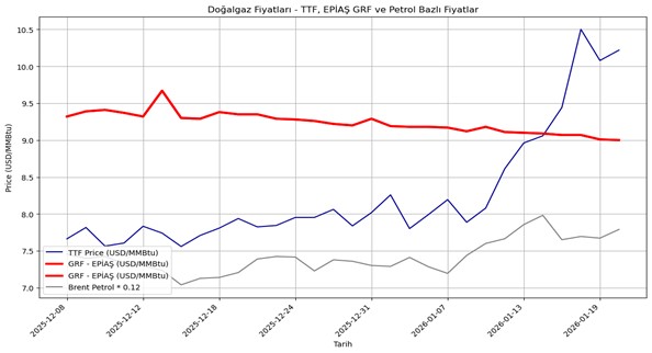 Avrupa gaz fiyatlarının çok hızlı artması kısa vadede Türkiye gaz piyasasını da etkileyebilir. Bu artışın sebebi Avrupa’da devre dışı olan nükleer santraller ve soğuk dalgası olsa da, TTF hareketinin bu kadar sert olması depolama endişelerini de fiyatlıyor olabilir. TTF’in bu seviyelerden tekrar 7-8 $/mmbtu bandına düşmemesi durumunda bu AB için enflasyona dönüşebilir. Nitekim gaz fiyatlarını bir enflasyon koruma aracı gören bazı tahvil hareketleri de gözlendi.