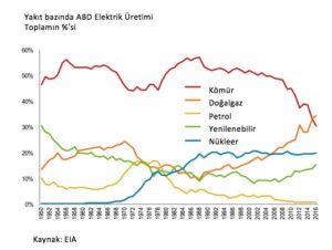 iliğinin artmasıyla, beklenen artışı göstermedi. - Kaya gazı devrimi ile düşen doğalgaz fiyatları kömürün ABD elektrik piyasasında rekabet edebilme gücünü bitirdi.
